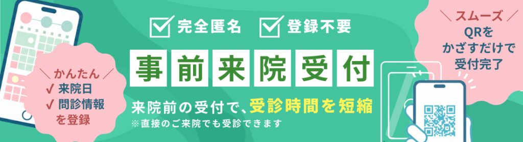 予約がなくてもご受診いただけますが、予約された方が優先となります。予約不要と案内していてもお待たせする場合があるため、Web予約をご利用いただき、事前に問診票をご入力いただくと、スムーズにご案内が可能です。