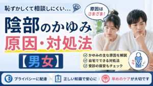 亀頭包皮炎は、亀頭や包皮に炎症が起きている状態です。初期や軽度では、強い痛みよりも「かゆい」「赤い」「少しヒリヒリする」といった症状で気づくことがあります。原因は細菌、カンジダ、摩擦、洗浄刺激などさまざまで、炎症によって皮膚の神経が刺激されるため、かゆみとして感じることがあります。