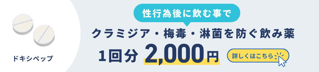 当院ではクラミジアの予防薬である、ドキシペップを処方しております。ドキシペップはクラミジアなどの感染リスク行為後72時間以内に服用することで感染リスクを下げることができる予防方法です。
